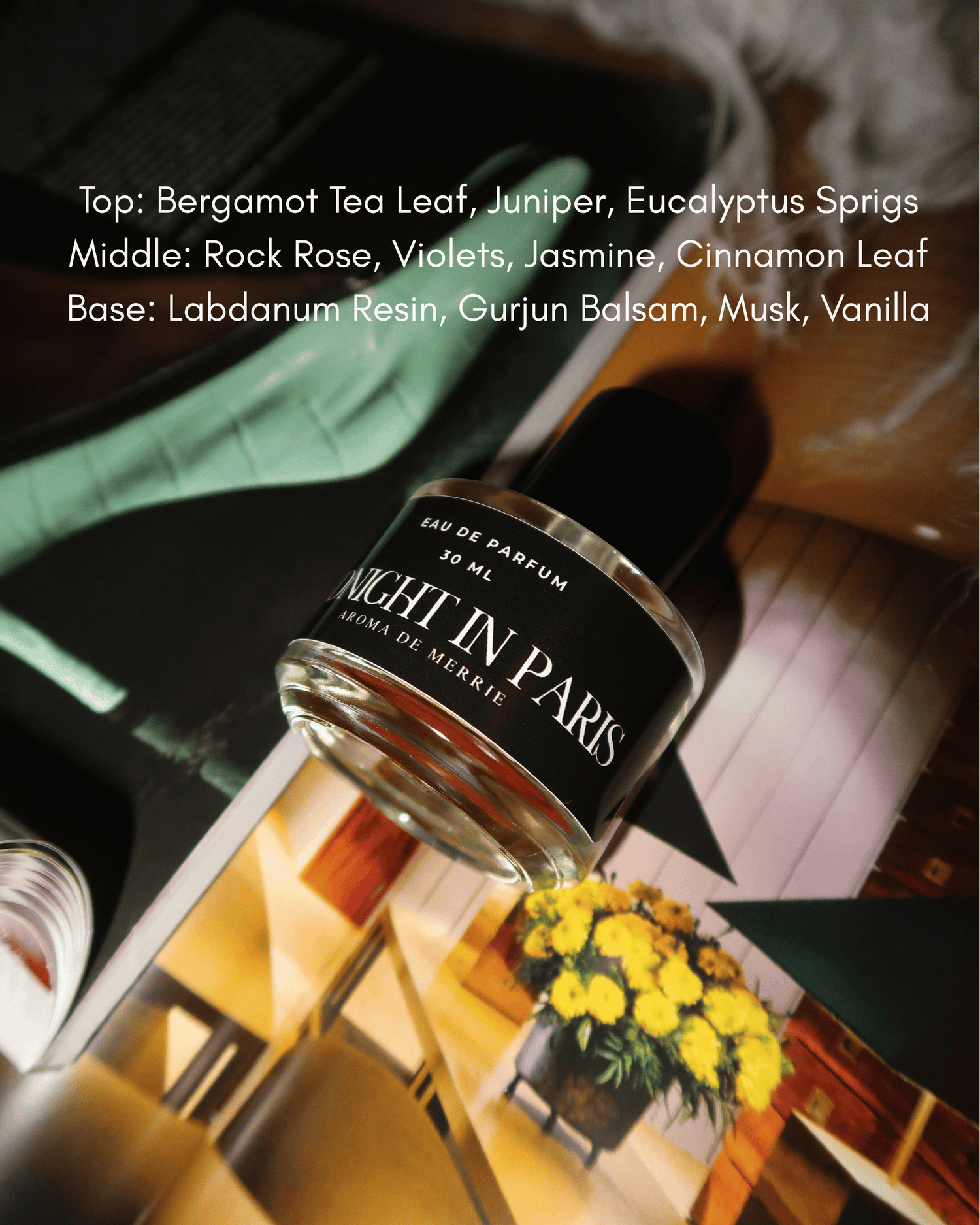 A romantic scent inspired by Paris after dark, where warm lights glow and conversations linger over wine. Smoky, powdery, and softly vanilla-y, it captures the quiet magic of a Parisian night.