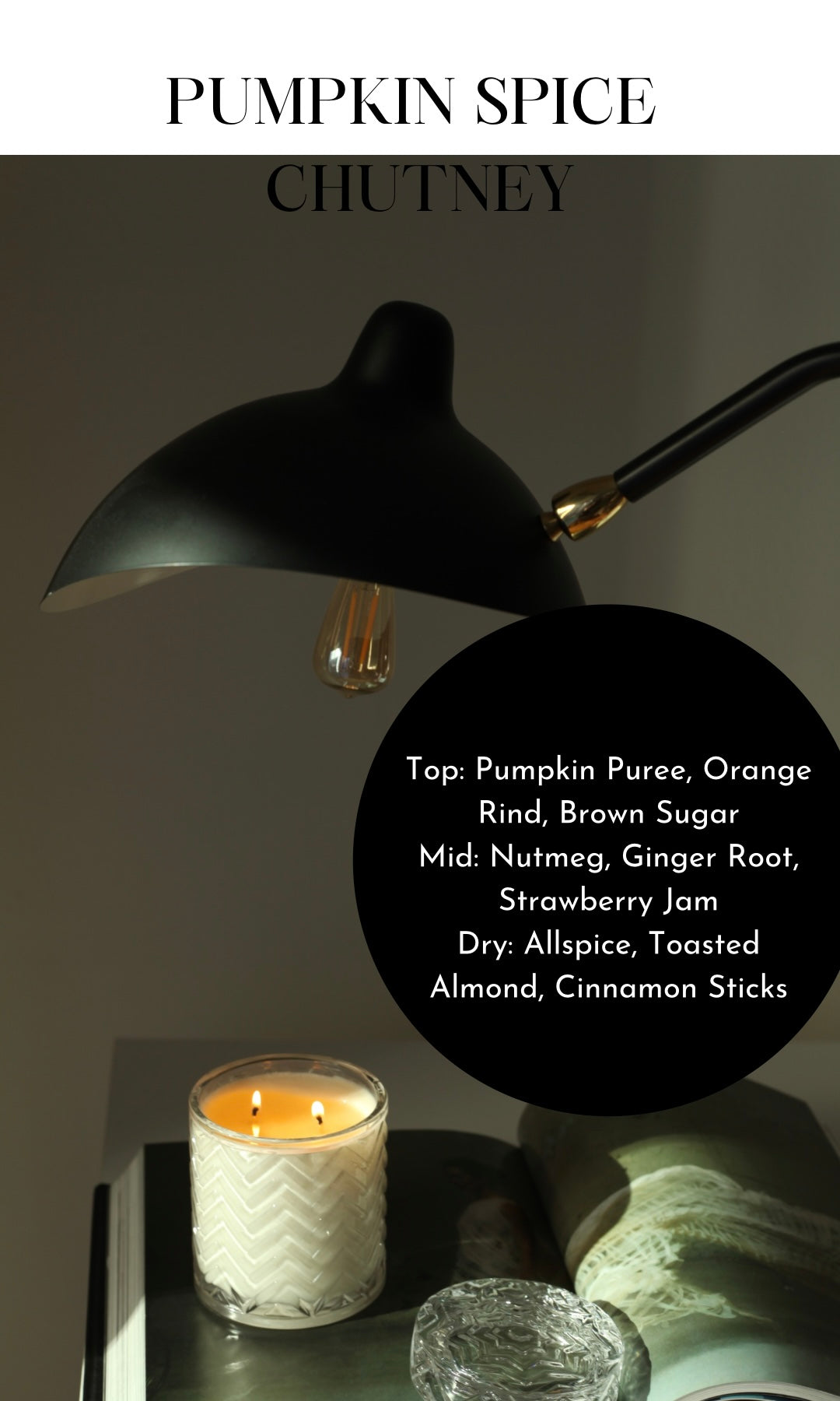 The Pumpkin Spice Chutney crystal candle opens with the comforting warmth of pumpkin puree, sweetened with a hint of orange rind and brown sugar. As it burns, the cozy spices of nutmeg and ginger root blend seamlessly with the sweetness of strawberry jam. The scent finishes with a rich, spiced dry down of allspice, toasted almonds, and cinnamon sticks, filling the room with the essence of autumn.